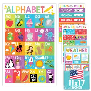 Hadley Designs 4アルファベット、月、天気、曜日のカレンダー、子供用ABCチャート、幼児向け壁用、PreK教室またはホームスクール用ラミ