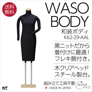 和装ボディ 黒ニット(胴長+フレキ腕+スチール台)着付練習・展示 K62-29-AAL