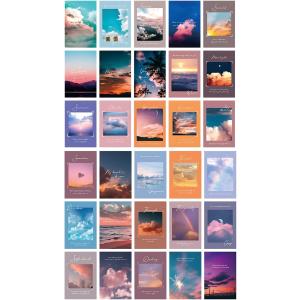おしゃれで可愛い ポストカード 30枚セット はがきサイズ 北欧 韓国 海外 インテリア 雑貨 ミニポスター (ブルー)