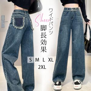 デニムパンツ レディース ワイドパンツ ジーンズ 大きいサイズ デザイン ロング丈 ハイウエスト 爆買