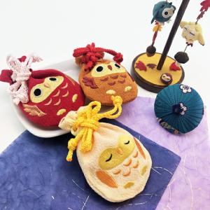 コインケース かわいい ふくろう ミニコインケース 6色 梟 フクロウ レディースコインケース 縁起物 小銭入れ 小物入れ マチ付き 小さい ちりめん細工館