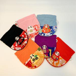 巾着バッグ 巾着袋 だるま 巾着・小 6色 達磨シリーズ 達磨 ダルマ 縁起物 小物入れ 贈り物 プレゼント 受験生 合格 必勝 お守り ちりめん細工館