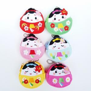 ポーチ 小物入れ 可愛い こけしのポーチ 4色 キャラクターポーチシリーズ 日本 可愛い ちりめん 刺繍 縁起物 ファスナー マチ付き ちりめん細工館