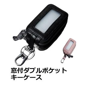 キーケース ダブルファスナー 窓付き 車 スマートキー スマートキーケース 2口 2ポケット レザー メンズ レディース ダブル 2つ 鍵 収納