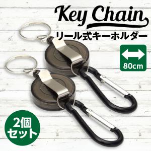 キーホルダー リール付き 2個 カラビナ 自動巻取り クリップ付き フック付き