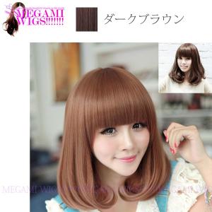 ウィッグ レディース ショート セミロング コスプレ ネット かつら フルウィッグ MEGAMI WIG 007 ダークブラウン