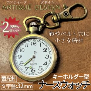 ナース ウォッチ 2個 蓄光 懐中 時計 キーホルダー アンティーク調 ナスカン シンプル リュック バッグ ポケット ランドセル ベルト ループ レトロ 2-NASWATCH