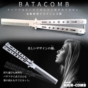 バタフライナイフ型 折りたたみ コーム くし 櫛 髪 ステンレス 携帯 フォールディング ストッパー コンパクト 美容 練習 おしゃれ デザイン 持ち運び BATACOMB