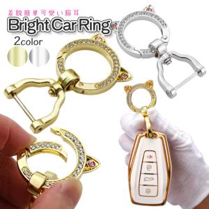 キーホルダー 猫耳 ネコ耳 ラインストーン カラビナ ねじ式 Dリング 車用 スマートキー キーリング ゴールド シルバー かわいい カギ ギフト プレゼント NYAKIRA