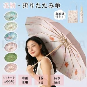 日傘 折りたたみ 完全遮光 晴雨兼用 折りたたみ傘 花柄 16本骨 耐風 大きい 折り畳み 晴雨兼用傘 UVカット UPF50+ 紫外線カット 雨傘 撥水 紫外線対策 日焼け