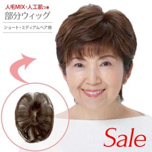 頭頂部用部分ウィッグ エレガントトップ Mサイズ 人毛MIX 半手植え ヘアピース トップカバー ユニセックス つむじの薄毛 前髪や分け目の白髪隠し ナチュラル
