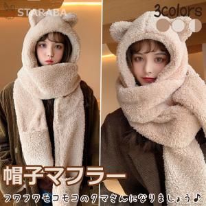 帽子マフラー ネックウォーマー マフラー 可愛い もこもこ ファー 帽子 ぼうし ボア 防寒 暖かい クマ 熊 ふわふわ モコモコ 送料無料