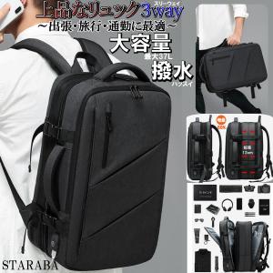 ビジネスリュック 3way マチ拡張 宿泊 拡張 37L USB充電ポート PC リュック 多機能 撥水加工 旅行 通学 メンズ 防水 出張 防災 おしゃれ 送料無料