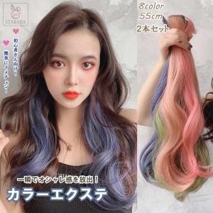 カラーエクステ ウィッグ カール 2本セット ワンタッチ クリップ式 巻き髪 カラフル かわいい 全8色 おしゃれ 付け髪 自然 55cm コスプレ アレンジ 送料無料