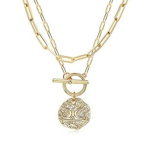 女性、月と星の悪アイメダリオンコインネックレス、18 Kゴールドペーパークリップチェーン用のゴールド層ネックレス