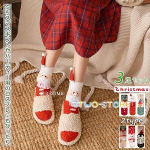 クリスマス ソックス 靴下 3足セット もこもこ サンタクロース コスプレ クリスマスギフト プレゼント フットカバー 冬 おしゃれ 暖かい 可愛い