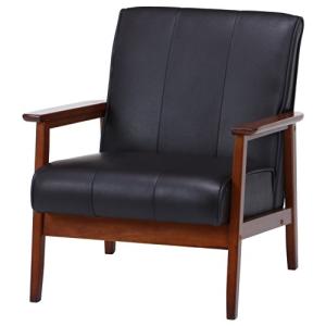 不二貿易 ソファ 1人掛け ソファー 一人掛け 肘付き 幅65×奥行72×高さ69cm ダークブラウン PU 合皮 天然木 お掃除ロボット通れる レトロ ラバーズ