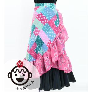 フラメンコ 巻きスカート パッチワーク柄×ペイズリー ネイビー×ピンク Fサイズ FMS-9