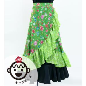 キッズ フラメンコ 巻きスカート 花柄 グリーン×イエローグリーン 120・140サイズ FMSp-8