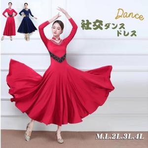 社交ダンス ドレス 練習着 競技着 ワンピース 長袖 透け感 豪華 パーティー モダン スタンダード ルンバ 専用 発表会 開場ドレス ストレッチ ネイビー S-2XL