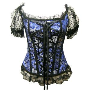 値下げ ビスチェ コルセット 半袖 Mサイズ 37 ブルー ブラック 青系 パーティー コスプレ ジャガード チャイナ風 在庫処分