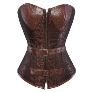 値下げ スチームパンク コルセット Mサイズ 55 茶 ブラウン ジャガード ビスチェ ニッパー コスプレ ロック イベント ゴシック
