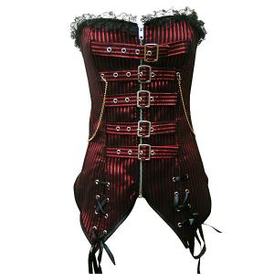 値下げ ラスト スチームパンク ストライプ コルセット S 赤黒 31 レッド ブラック オープンバスト コスプレ 在庫処分