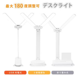 デスクライト 電気スタンド 卓上 学習ランプ LEDライト 多機能 折りたたみ 調色可能 USB充電(ホワイト(スマホスタンド付))