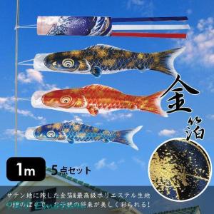 鯉のぼり こいのぼり 金箔鯉 1m 5点セット 真鯉 緋鯉 子鯉 ポール付き 吹流し ベランダ用 初節句お祝い 子供の日 端午の節句 豪華 男の子 お祝い 組み立て