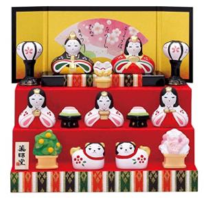 薬師窯 桃の節句 ひな人形 錦彩 花かざり 雛(三段飾り)