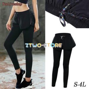 レギンス スパッツ ロング 重ね着 レディース スポーツウェア フィットネス ヨガウェア スポーツ ウォーキング ウェア タイツ 速乾 ブラック 黒 ダンス ジム
