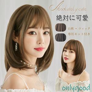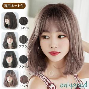 ウィッグ ミディアム ボブ セミロング 自然 フルウィッグ ウイッグ 黒髪 ハイトーンカラー かつら 大人 小顔効果 レディース フルウィッグ ゆるふわ