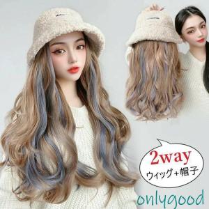 ウィッグ キャップ 帽子付きウィッグ ハット かつら 帽子ウィッグ 髪付き帽子 もこもこ あったか レディース ロング巻き 2way 小顔効果 髪の毛 ナチュラル 着脱