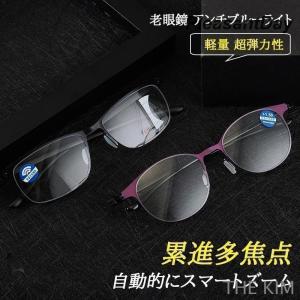 老眼鏡 おしゃれ アンチブルーライト 累進多焦点 自動的にスマートズーム 軽度レンズ レディース メンズリーディンググラス 軽量 弾力性 敬老の日