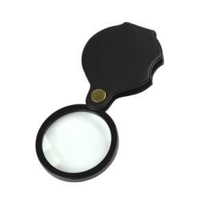 AAGWW ポケットルーペ8倍倍率手持ちルーペ携帯用折りたたみ式ルーペ革ケース収納に便利携帯用(直径50mm厚みレンズ、色:黒)