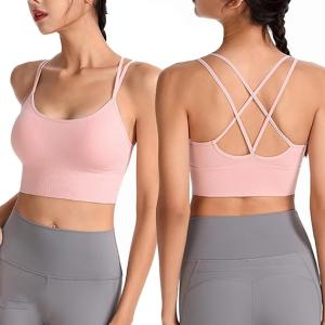 [MikoMako] スポーツブラ 揺れない カップ付き 吸汗速乾 ヨガウェア スポブラ ナイトブラ スポーツウェア(ピンク)