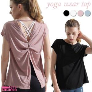 ヨガウェア トップス Tシャツ ヨガ ホットヨガ ジム エクササイズ フィットネスウェア バッグデザイン おしゃれ 可愛い スポーツウェア フィットネスウェア