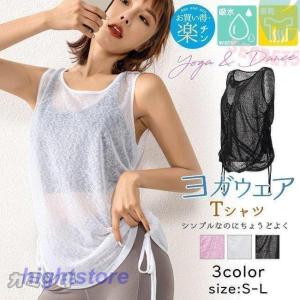 ヨガウェア トップス シースルー サイドリボン ギャザー入り ノースリーブ ゆったり おしゃれ 重ね着にピッタリ レディース タンクトップ 無地 薄手