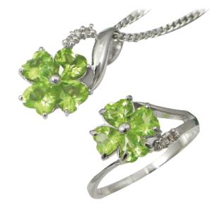 指輪 リング ネックレス ペンダント クローバー ペリドット ダイヤモンド 誕生石 ペア セットクローバーリング ペンダントセット I−9490 17号