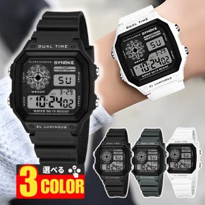 腕時計 レディース メンズ キッズ デジタルウォッチ スポーツウォッチ ストップウォッチ アラーム ライト付き 防水 見やすい スクエア型 多色展開
