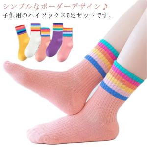 5足セット ライン入りソックス ライン入りソックス 女の子 ライン 通気性 子供靴下 男の子 春秋 靴下 ソックス ハイソックス 可愛い ボーダーソッ