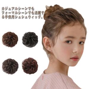 シュシュ ウィッグ ポイントウィッグ つけ毛 キッズ 2個入り 送料無料 お団子 エクステ カール ポニーテール ツインテール 髪飾り ヘアアクセサリ