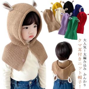 送料無料 耳付き クマ 女の子 男の子 バラクラバ ニット帽 ニット クマ耳 スヌード マフラー ハット ニットキャップ フーディー 付けフード フェ