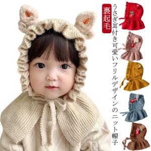 送料無料 耳付き うさぎ耳 バラクラバ ニット帽 ニット 裏ボア 裹起毛 フリル スヌード マフラー ネックウォーマー ニットキャップ フーディー フ