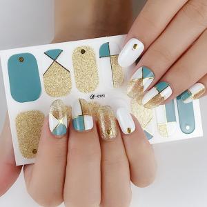 ネイルシール ハンド用 ミント系 グリーン ゴールド 金 ホワイト キラキラ おしゃれ ファッション 韓国風 3D サロンレベル 貼るだけ 花 しま ボード柄 手指爪用