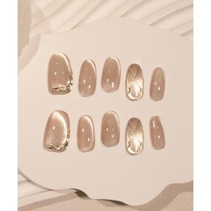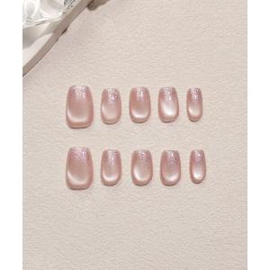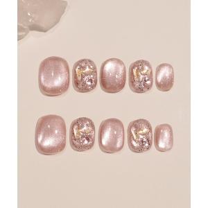 ネイルチップ ネイルシール 水光ネイルピンクマグネットオーロラグラデーションラメゴールドミラーラインオーバルネイルチップ