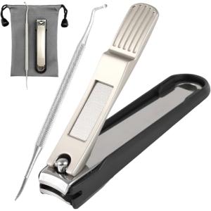 爪切り ステンレス鋼 足爪切り15mmワイドジョー 大きなサイズ (ブラック)