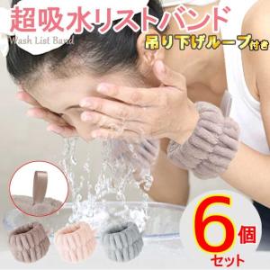 吸水リストバンド 6個セット 吊り下げループ付き 洗顔 リストバンド 吸水 速乾 汗拭き ドライ シュシュ アームバンド 手首 おくるみ ガーゼ タオル かわいい