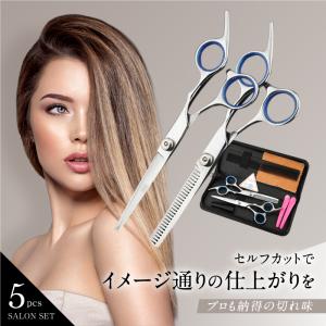 ステンレス製 散髪 理容 はさみ セルフカット ヘアカット スキバサミ 2本セット コーム カット オールインワン オシャレ ハサミ 鋏 スキばさみ