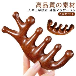 頭皮マッサージ 2点セット 天然木 首 木製 頭皮 ヘアケア 頭皮ツボ押し サンダルウッド 経絡マッサージ グッズ リンパマッサージ ツボ押し棒 経絡